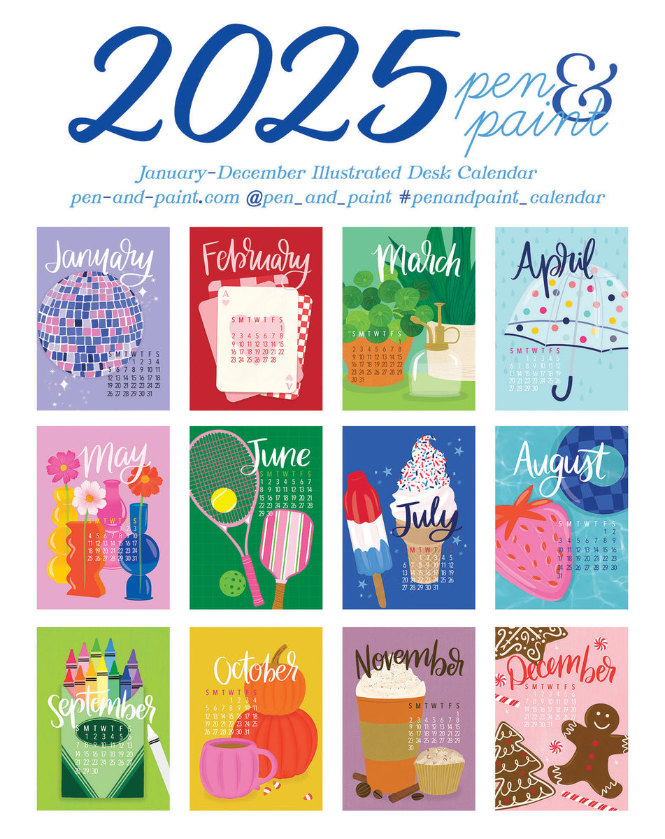 WOODEN BLOCK + 2025 Pen & Paint Illustrated Calendar